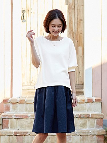 Angeliebe エンジェリーベ マタニティ ジャガード ミモレ 丈 スカート 妊婦服 アジャスター調節可 裏地付 L ネイビー