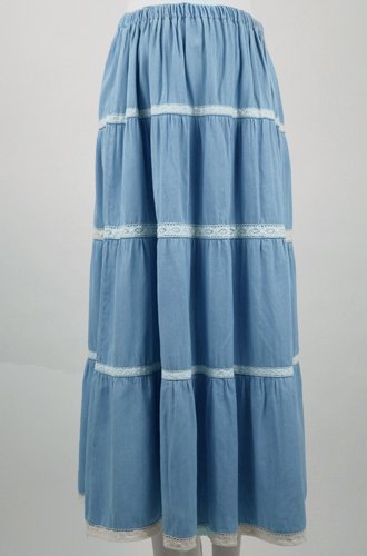 【 アウトレット 】 Angeliebe エンジェリーベ マタニティ ティアード デニム スカート 妊婦服 産前 産後 マキシ ロング ジーンズ フリー ライト ブルー