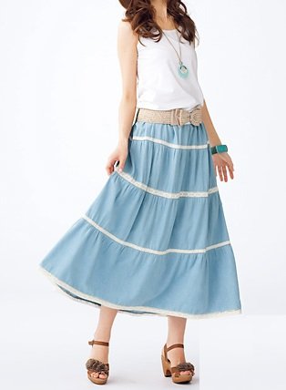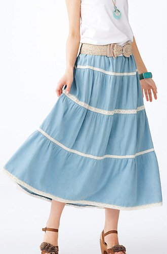 切り替えレースがボーダのようなポイントにもなるさわやかでキュートなロングスカート。