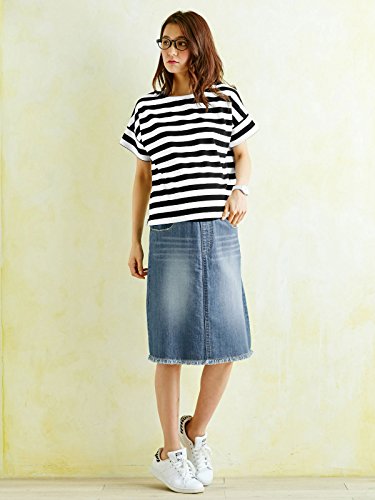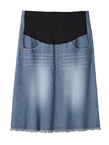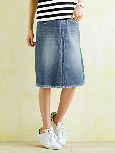 Angeliebe エンジェリーベ マタニティ ストレッチ デニム 裾 フリンジ ミディ 丈 スカート 妊婦服 産前 産後 アジャスター調節可 M サックス
