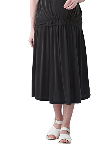 Angeliebe エンジェリーベ マタニティ ピーチ モダール 天竺 ミモレ 丈 スカート 産前 産後 対応 妊婦服 フリー ブラック 21345 21345400