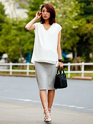Angeliebe エンジェリーベ マタニティ ミモレ 丈 ポンチ タイト スカート 妊婦服 産前 産後 対応 裏地付 M ~ L グレー