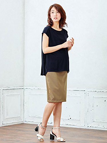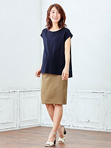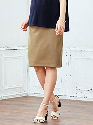 Angeliebe エンジェリーベ マタニティ ミモレ 丈 ポンチ タイト スカート 妊婦服 産前 産後 対応 裏地付 S ~ M キャメル