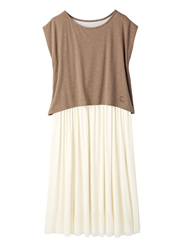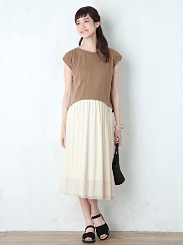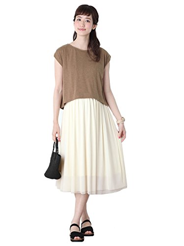 Angeliebe エンジェリーベ マタニティ ワンピース 授乳口 付 チュール スカート ドッキング ワンピ 妊婦服 産前 産後 親子ペア可 フリー ブラウン ベージュ × アイボリー 2...
