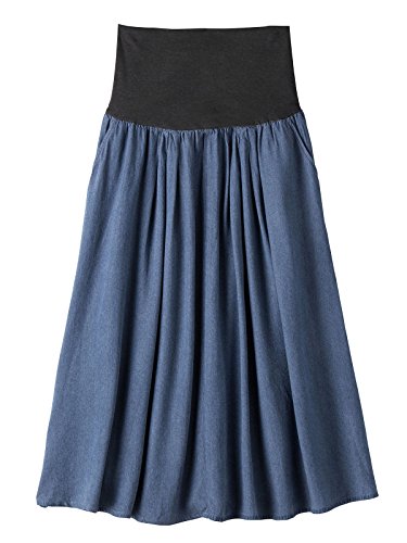 - ●【産前~産後まで使えるレーヨンデニムマキシスカート】軽い着心地のなめらかレーヨンデニム。両サイドには便利なスラッシュタイプのポケット付き。お腹部分を折り返せば産後もお使いいただけます。