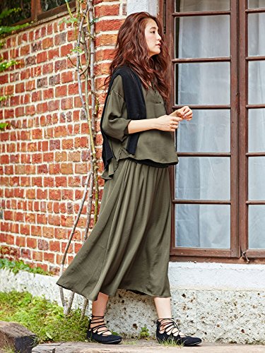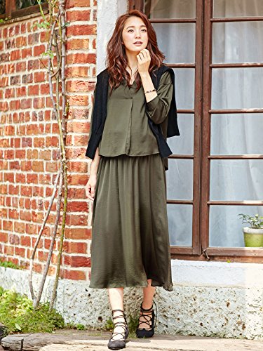 Angeliebe エンジェリーベ マタニティ ビンテージ サテン マキシ スカート 妊婦服 産前 産後 フリー カーキ