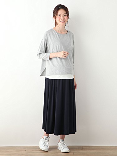 Angeliebe エンジェリーベ マタニティ 産前 産後 対応 ベア 天竺 マキシ スカート 妊婦服 ウエストゴム アジャスター調節可 M ネイビー
