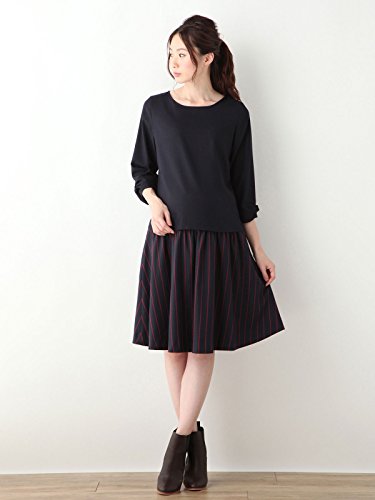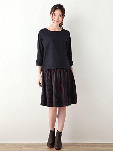 Angeliebe エンジェリーベ マタニティ ストライプ ギャザー フレア スカート 産前 産後 対応 妊婦服 ウエストゴム アジャスター調節可 フリー ネイビー ( レッドライン ) 21128 21128300