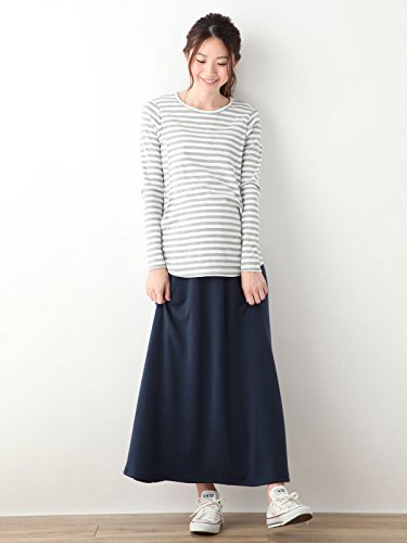 Angeliebe エンジェリーベ マタニティ ふんわり 裏起毛 マキシ スカート 産前 産後 対応 妊婦服 ロング Aライン M ~ L ネイビー21545 21545302