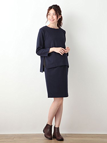 Angeliebe エンジェリーベ 授乳 口 付 産前 産後 対応 サイド スリット 入り プル オーバー & スカート セット M ネイビー