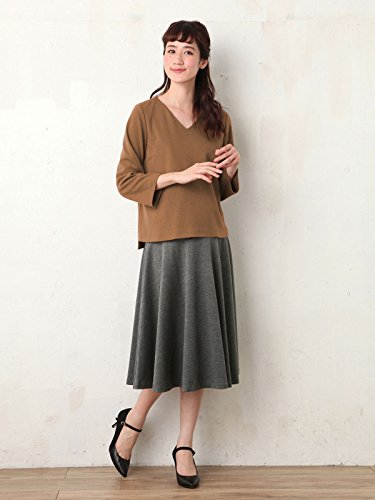 Angeliebe エンジェリーベ マタニティ 微 起毛 上質 ポンチ ミモレ 丈 フレア スカート 産前 産後 対応 妊婦服 膝丈 アジャスター調節可 S ~ M グレー