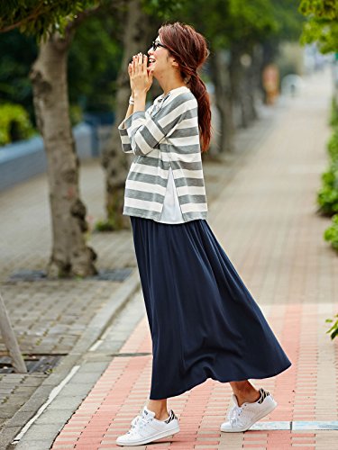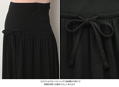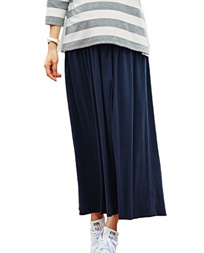 Angeliebe エンジェリーベ マタニティ やわらか フライス マキシ スカート 産前 産後 対応 妊婦服 ロング ウエスト調節可 S ~ M ネイビー21544 21544201