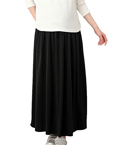 Angeliebe エンジェリーベ マタニティ やわらか フライス マキシ スカート 産前 産後 対応 妊婦服 ロング ウエスト調節可 M ~ L ブラック21544 21544102