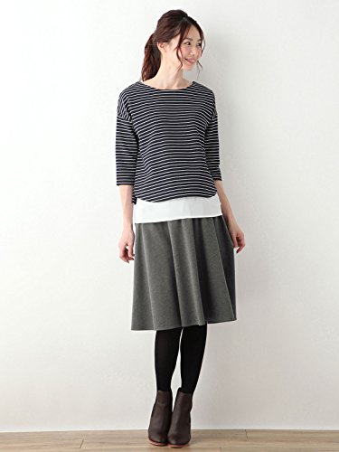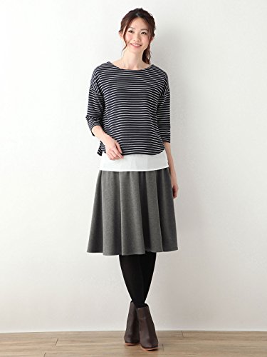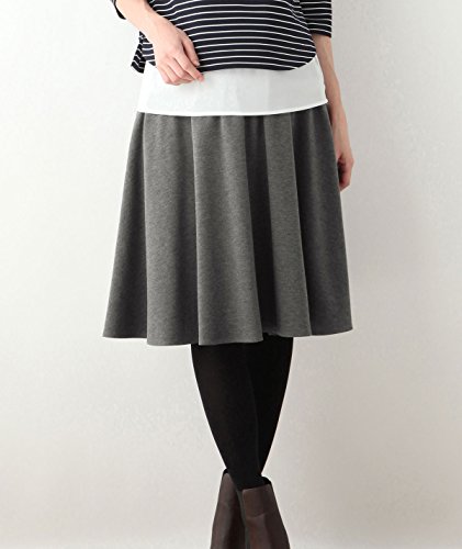 Angeliebe エンジェリーベ マタニティ 産前 産後 対応 フィット ポンチ フレア スカート ( 2レングス展開 ) 妊婦服 仕事着 S ~ M ミモレ 丈 杢 グレー 21622 21622301