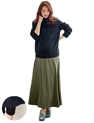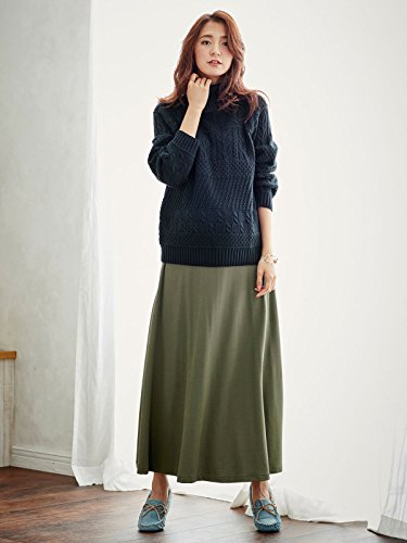 Angeliebe エンジェリーベ 産前 産後 対応 ボア パンツ in ニット カルゼ フレアー マキシ スカート M カーキ