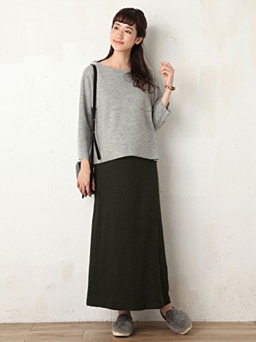 Angeliebe エンジェリーベ 産前 産後 対応 ボア パンツ in テレコ Iライン マキシ スカート L ブラック