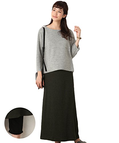 Angeliebe エンジェリーベ 産前 産後 対応 ボア パンツ in テレコ Iライン マキシ スカート マタニティー 妊婦服 アジャスター調節可 M ブラック