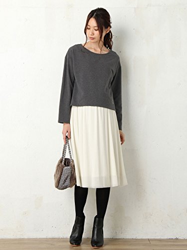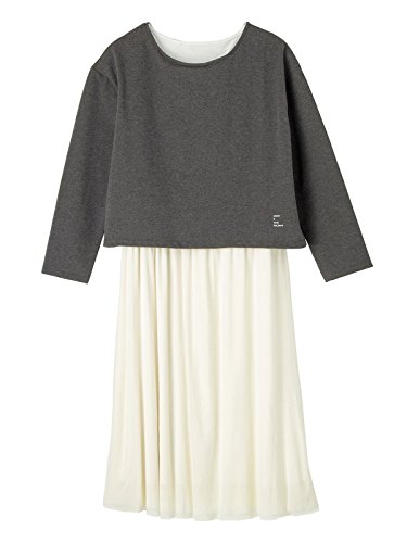 Angeliebe エンジェリーベ 産後用 授乳服 ワンピース ミニ 裏毛 チュール スカート ドッキング ワンピ 親子ペア お揃い リンクコーデ 可 長袖 フリー チャコール × アイボリー 30086 30086300