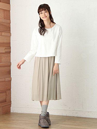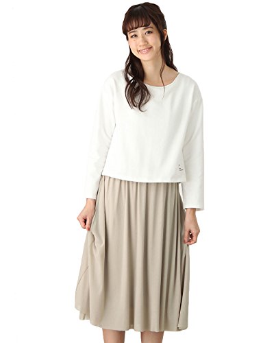 Angeliebe エンジェリーベ 産後用 授乳服 ワンピース ミニ 裏毛 チュール スカート ドッキング ワンピ 親子ペア お揃い リンクコーデ 可 長袖 フリー オフ × ベージュ 30086 30086100