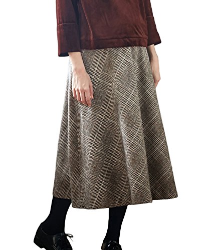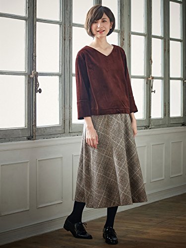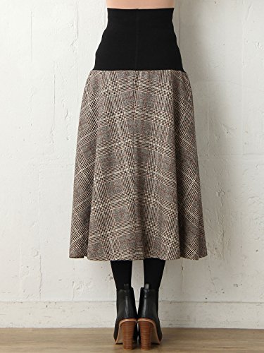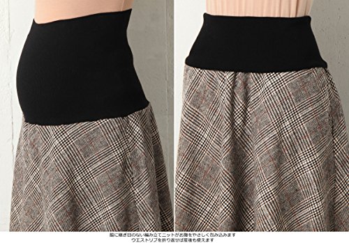 Angeliebe エンジェリーベ マタニティ フィット グレン チェック ツイード フレア スカート 産前 産後 妊婦服 ミモレ丈 S ~ M ブラウン 系 21639 21639201