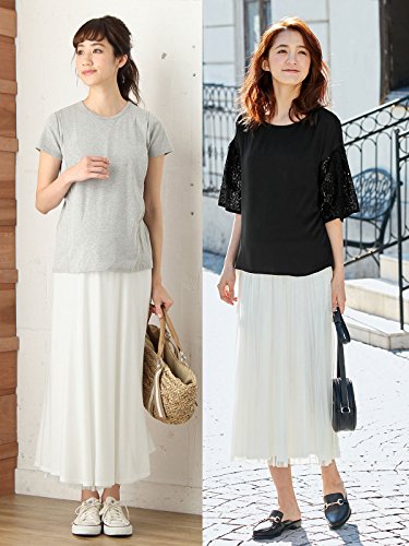 - ●【産前~産後まで使えるリバーシブルスカート】やわらかカットソー&チュールの組み合わせ。チュールは、プリーツ加工を施して甘さをおさえ、きちんと感をアップしました。カットソーを表にすると、裾がチュールのレイヤーどになります。