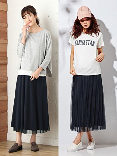 - ●【産前~産後まで使えるリバーシブルスカート】やわらかカットソー&チュールの組み合わせ。チュールは、プリーツ加工を施して甘さをおさえ、きちんと感をアップしました。カットソーを表にすると、裾がチュールのレイヤーどになります。