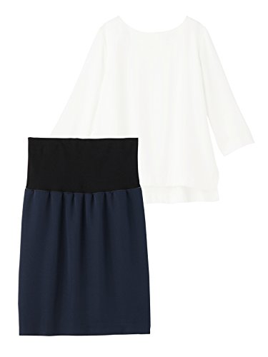 Angeliebe エンジェリーベ マタニティ 授乳口付き セットアップ プルオーバー トップス & スカート セット 妊婦服 産前 産後 L オフ×ネイビー 21858 21858170