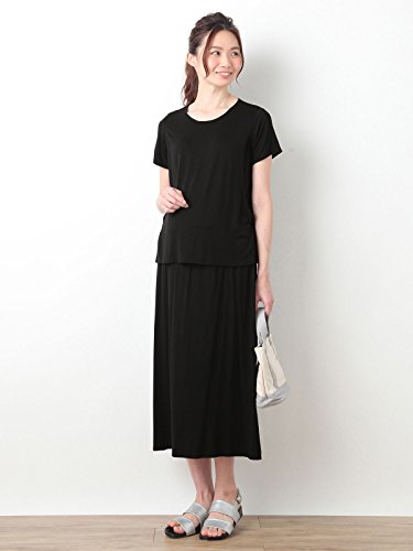 Angeliebe エンジェリーベ マタニティ 授乳口付き 涼感 マルチウェイ セットアップ Tシャツ & スカート セット 妊婦服 産前 産後 半袖 M ~ L ブラック 21882 21882102