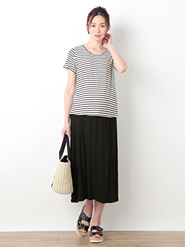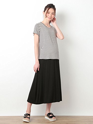 Angeliebe エンジェリーベ マタニティ 授乳口付き 涼感 マルチウェイ セットアップ Tシャツ & スカート セット 妊婦服 産前 産後 半袖 M ~ L オフ × ブラック ボーダー 21882 21882402