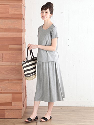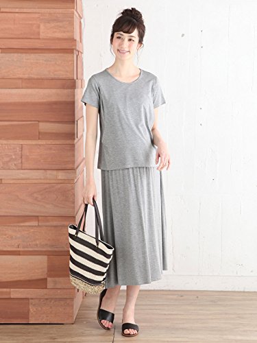 Angeliebe エンジェリーベ マタニティ 授乳口付き 涼感 マルチウェイ セットアップ Tシャツ & スカート セット 妊婦服 産前 産後 半袖 M ~ L グレー 21882 21882302