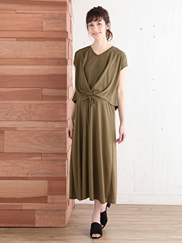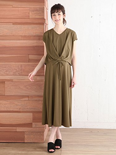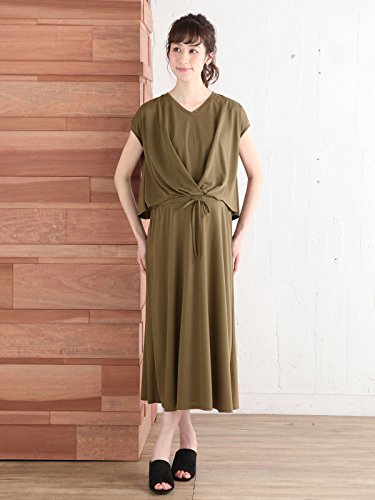 Angeliebe エンジェリーベ マタニティ ワンピース 授乳口付き フロント タック マキシ ワンピ 妊婦服 産前 産後 M ~ L カーキ 21888 21888202