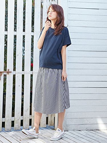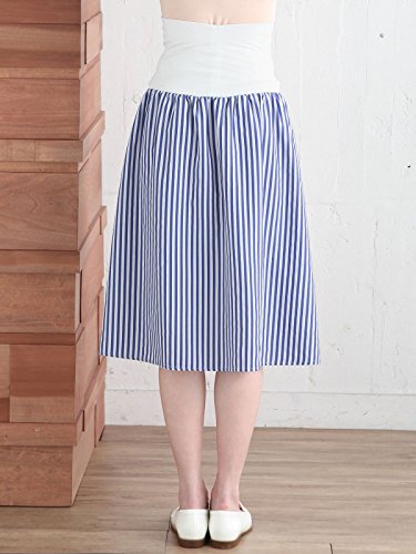 Angeliebe エンジェリーベ マタニティ ブロード ストライプ ギャザー スカート 妊婦服 産前 産後 フリー ネイビー × ホワイト 21913 21913200
