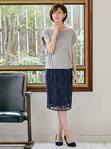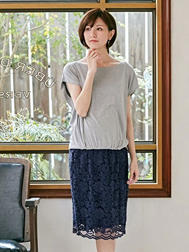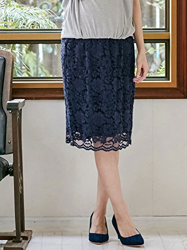 Angeliebe エンジェリーベ マタニティ レース スカラップ タイト スカート 妊婦服 産前 産後 S ~ M ネイビー 22023 22023301