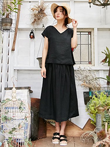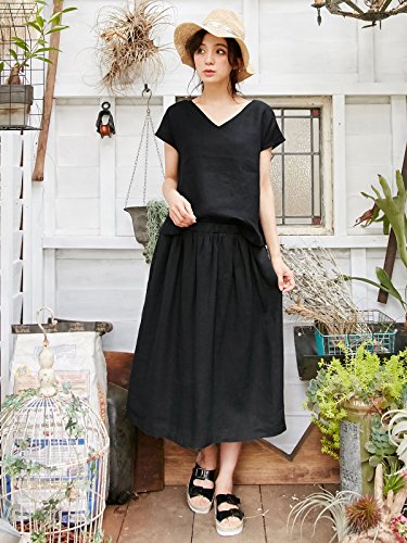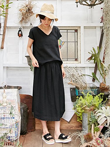 Angeliebe エンジェリーベ マタニティ リネン ギャザー スカート 妊婦服 産前 産後 M ~ L ブラック 22043 22043302