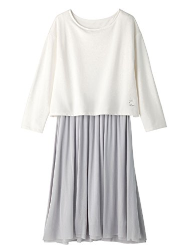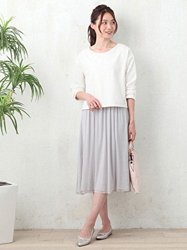 Angeliebe エンジェリーベ 産後用 授乳服 ワンピース ミニ 裏毛 チュール スカート ドッキング ワンピ 親子ペア お揃い リンクコーデ 可 長袖 オフ × ペール グレー 30086 30086500