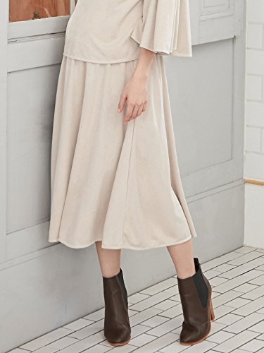 - ●【季節感を先取りできるフェイクスエード。ミディ丈でエレガントなスカートスタイルに】季節感を演出してくれるフェイクスエード。ふわりと広がるフレアシルエットと長めの着丈でエレガントな着こなしが楽しめます。素材の落ち感をいかしたキレイめデザインは、トップスを選ばず合わせられて着まわしにも便利。