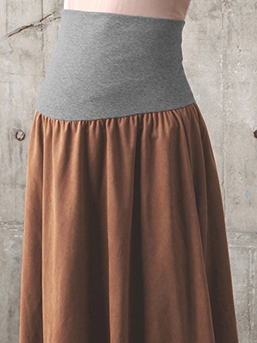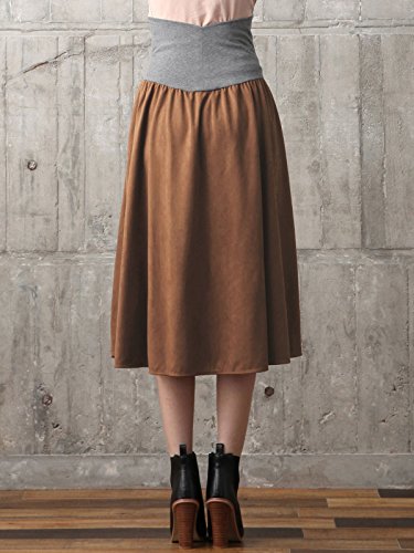 - ●【産前~産後まで使えるフェイクスエードフレアースカート】美しい光沢でクラス感を演出するフェイクスエード生地。大きなお腹もやさしく包み込みます。ストレッチが効いているので動きやすいです。同素材のトップスを合わせればセットアップスタイルも。