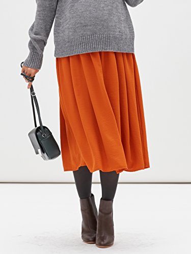 - ●【表面感のある素材で高見え効果も大。人気のカラースカートです】人気のカラースカートを、表面感のある素材で高見えアイテムに。たっぷりとしたギャザーで大人っぽい雰囲気のミモレ丈に仕上げました。トップスを選ばず着まわせてヘビーローテーション間違いなし。