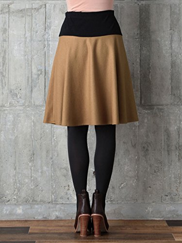 - ●【産前~産後まで使えるミディ丈ウール混フラノフレアースカート】ソフトな風合いの中肉のフラノ素材。ストレッチの効いたカットソー素材が変化するお腹に優しくフィット。お腹が小さなうちや産後は、ウエスト部分を折り返して着用可能です。アジャスター付きなので、ウエスト調節が可能です。