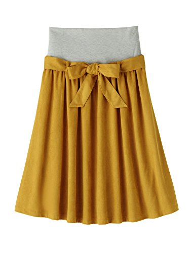 Angeliebe エンジェリーベ マタニティ ミモレ丈 フェイクス ウェード フレア スカート 妊婦服 産前 産後 アジャスター調節可 フリー マスタード 22312 22312100
