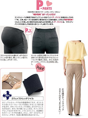 【 アウトレット 】 Angeliebe エンジェリーベ マタニティ P ・ パンツ 2 ウェイ ストレッチ ストレート フレア 妊婦服 アジャスター調節可 ウエストゴム 7号 T モカ ベージュ