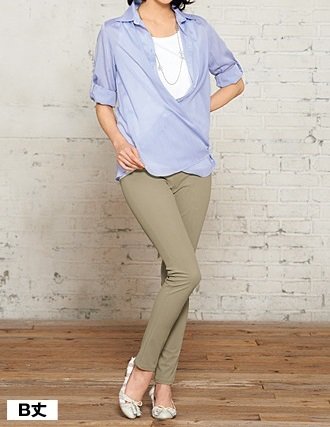 【 アウトレット 】 Angeliebe エンジェリーベ マタニティ マルチ ウルトラ ハイ テンション ストレッチ パンツ 妊婦服 ズボン アジャスター調節可 M B 丈 オリーブ ベージュ