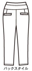 - ●前=お腹部分に共布切り替え 飾りファスナー開きステッチ留め ウエスト=フロントはボタンホール付ゴム入り調節可 左サイドファスナー開き 後=立体切り替え、左右にダーツ 左右飾り片玉縁