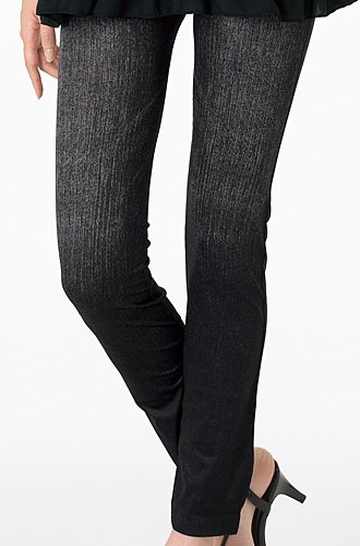 伸びの良いストレッチと程よいハリが特長の素材に、だまし絵のようなデニム風プリントを施したレギンス。ウエスト内部はリブ編みと2重編みでルーズフィット。デニム感覚でオシャレを楽しんで。ヒップまわりのもたつきがないので、どんなトップスもキレイに着こなせます。