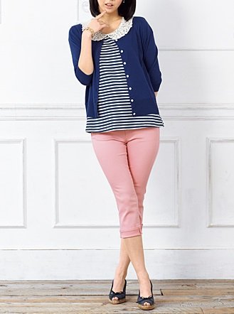 【 アウトレット 】 Angeliebe エンジェリーベ マタニティ P ・ パンツ 接触 冷感 ストレッチ チノ クロップ ド 妊婦服 ズボン アジャスター調節可 7号 マカロン ピンク