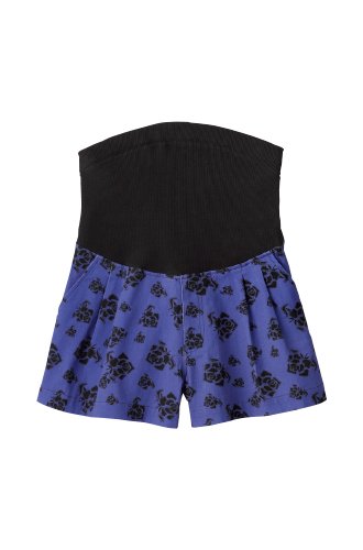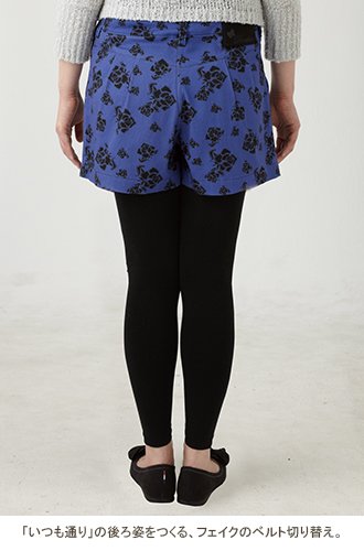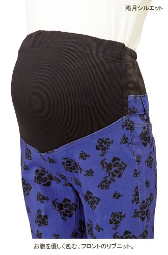 Angeliebe エンジェリーベ マタニティ P ・ パンツ ストレッチ チノ ショート パンツ 妊婦服 ウエストゴム アジャスター調節可 9号 ブルー 地 X ブラック 花柄 プリント 20189 20189320