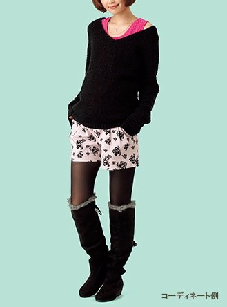 - 光沢感のあるストレッチチノにトレンドのバラ柄をプリント。