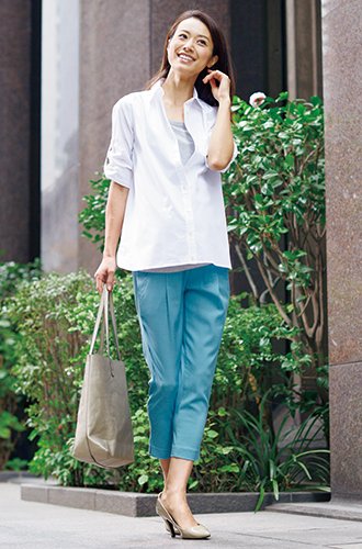 Angeliebe エンジェリーベ マタニティ P ・ パンツ ストレッチ テーパード 妊婦服 ズボン ウエストゴム アジャスター調節可 7号 ライト ブルー
