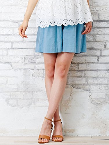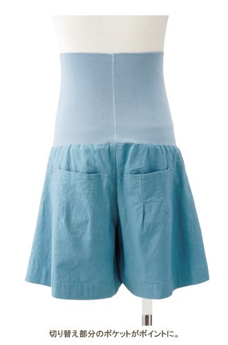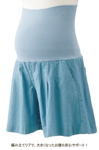 Angeliebe エンジェリーベ マタニティ フィット リネン 混 ストレッチ ショート キュロット 産前 産後 対応 妊婦服 ショート パンツ 11号 グレイッシュ ブルー