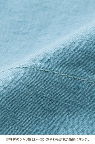 - ●素材/麻53%、レーヨン44%、ポリウレタン3%お腹部分(編みたてリブニット)=綿55%、ポリエステル30%、ナイロン12%、ポリウレタン3%
